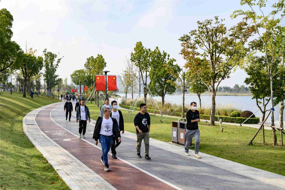秋風(fēng)送爽,秋意盎然,聞著秋天的味道、聽著秋天的聲音,我們出發(fā)啦!隨著行進(jìn)口號(hào)響起,環(huán)湖綠道上頓時(shí)熱鬧了起來(lái)。一路上,員工們你追我趕向前沖!有勁走的,有小步快速行走的,也有達(dá)人一路小跑的,雖然不是比賽,雖非運(yùn)動(dòng)員標(biāo)準(zhǔn)動(dòng)作,但大家盡情體驗(yàn)著快樂、感受著美景,個(gè)個(gè)臉上洋溢著興奮與喜悅。行進(jìn)隊(duì)伍一路揮灑的熱情為輕紗薄霧中的秀湖平添了一道獨(dú)特而亮麗的動(dòng)感風(fēng)景線。