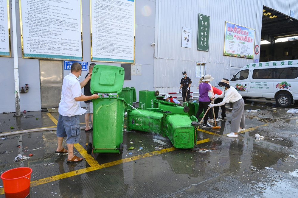 難點(diǎn)重點(diǎn)先再作整治:28日下午2時(shí)至18時(shí),黨員青年突擊隊(duì)員和員工們用4個(gè)小時(shí)開(kāi)展“清積物、整貨場(chǎng)”大行動(dòng),將市場(chǎng)1-4區(qū)所有攤位內(nèi)部衛(wèi)生難點(diǎn)問(wèn)題作了一次徹底大清理、對(duì)貨物墊倉(cāng)板底下的垃圾雜物作徹底清倉(cāng)、全部木制墊倉(cāng)板作清除,為后續(xù)將進(jìn)行的攤位墻面刷涂和整體更新墊倉(cāng)板作好準(zhǔn)備。市場(chǎng)遷入現(xiàn)址已近十八年有余,時(shí)間長(zhǎng)致房屋設(shè)施相對(duì)陳舊,通過(guò)本次創(chuàng)建迎檢對(duì)現(xiàn)場(chǎng)環(huán)境面貌加以改善,進(jìn)一步構(gòu)建市場(chǎng)良好秩序。