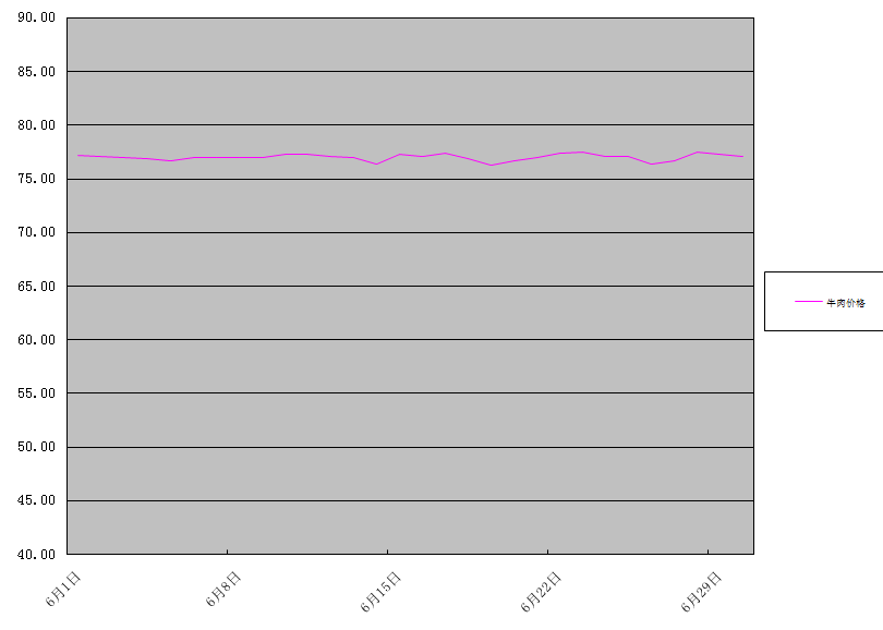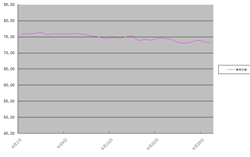 牛肉批發(fā)均價為76.98元/公斤,與上月基本持平,同比上升8.7%。羊肉批發(fā)均價為74.83元/公斤,環(huán)比下降2.3%,同比上升10.6%。