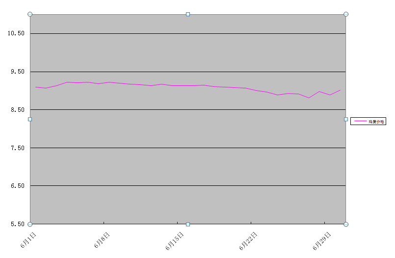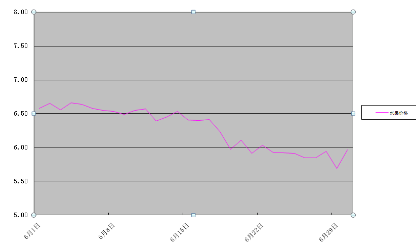本月鴨梨、富士蘋果、巨峰葡萄、香蕉、菠蘿和西瓜6種水果批發(fā)均價為6.27元/公斤,環(huán)比下降7.9%,同比上漲7.0。來源:農業(yè)農村部信息中心
