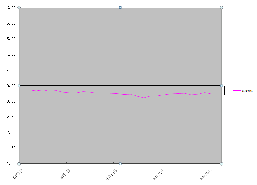 西紅柿、豆角、黃瓜、茄子、菜花和青椒6種果類蔬菜批發(fā)均價為3.75元/公斤,環(huán)比下降12.4%,同比下降1.9%。
